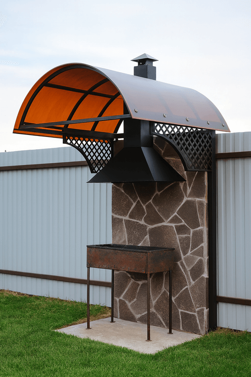 - Тип конструкции: навес над мангальной зоной может быть открытым, частично закрытым или полностью обустроенным.